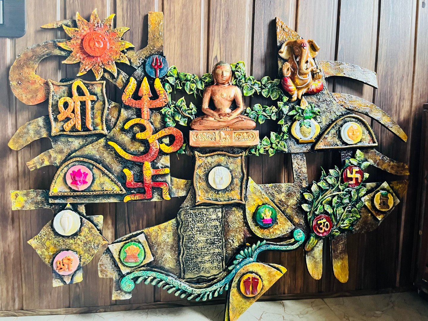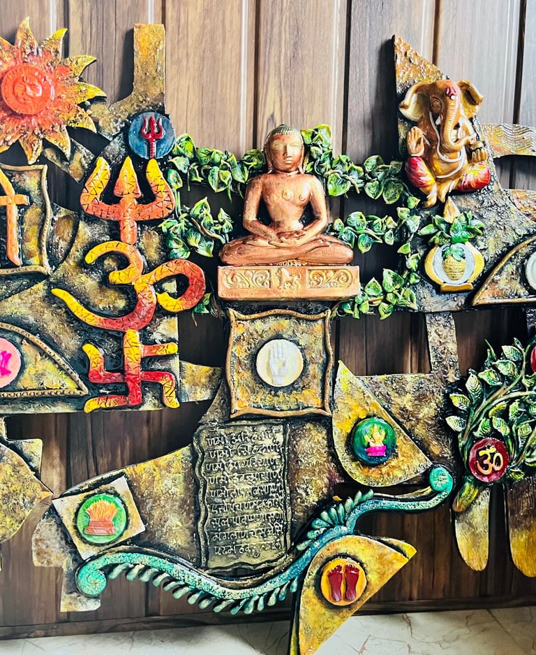 We craft unique and innovative designs, Totally handmade 3d mural wall art frame which is hanged in front of main entrance. our creations embody the perfect blend of tradition and innovation.
