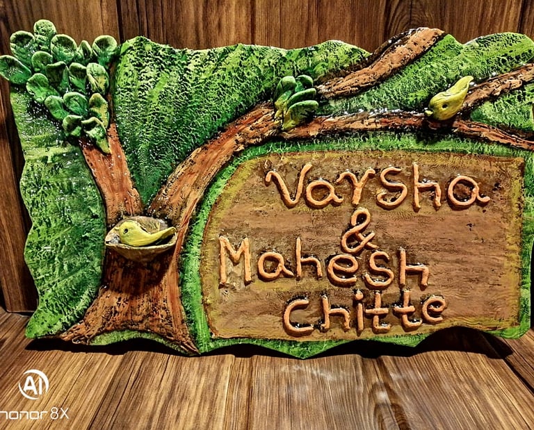 Our handcrafted decor collection also features exquisite nameplates for main entrance, Every name plate is unique, custom made.