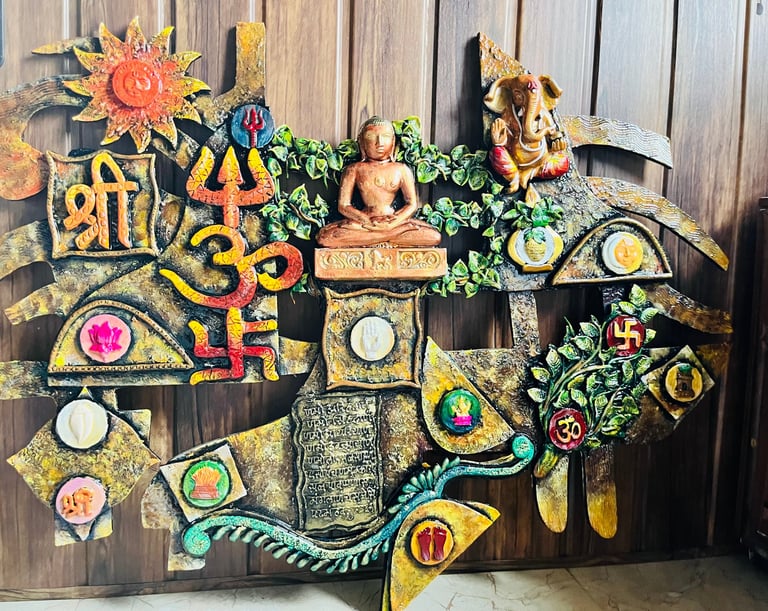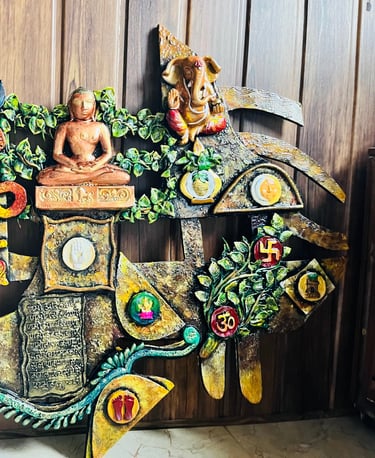 We craft unique and innovative designs, Totally handmade 3d mural wall art frame which is hanged in front of main entrance. our creations embody the perfect blend of tradition and innovation.