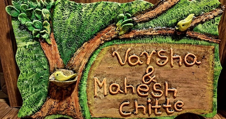 Our handcrafted decor collection also features exquisite nameplates for main entrance, Every name plate is unique, custom made.